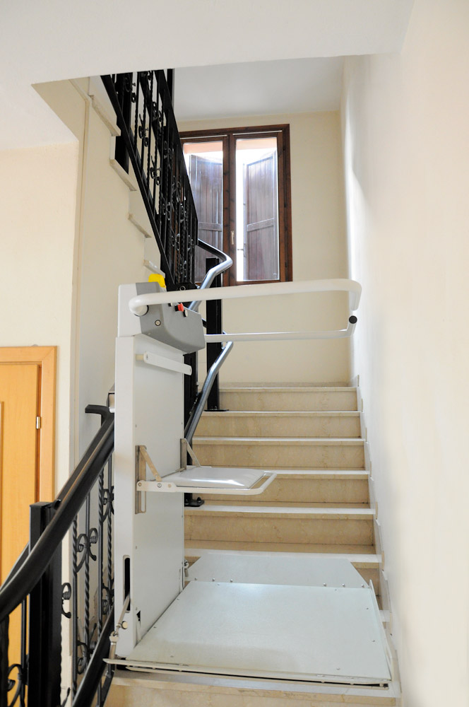 Motorická časť teda nie je súčasťou telesa schodiskovej plošiny, ale nachádza sa v hornej stanici. Na konci vodiacej koľajnice je umiestnená rozmermi subtilná strojovňa, ktorá navíja lano a to umožňuje tak pohyb plošiny SLIM. Samotné teleso schodiskovej plošiny bez motorickej časti je veľmi tenké, vďaka čomu je možné inštalovať tento schodiskový výťah aj na veľmi úzke schodiská. V slovenských podmienkach sa stretávame často krát so schodiskami v starších tehlových bytovkách kde šírka schodiska je len niekde okolo 1m. Od teraz sme opäť o krok pokročili v prinášaní nových riešení pre slovenského klienta tak, aby sme dosiahli bezbariérovosť ako je vo vyspelých štátoch Európy.